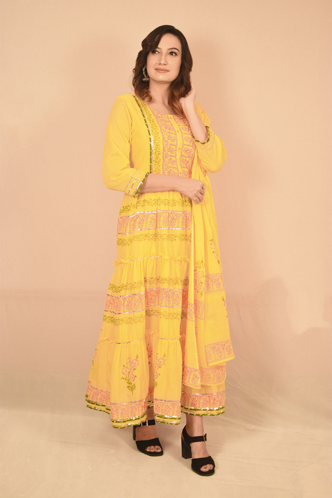 Havey Rayon, set of three, Nyra cut round neck, front embroidery work, straight pants, full-length dupatta